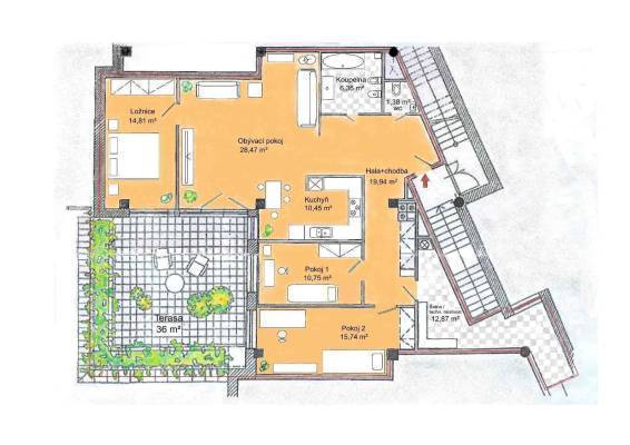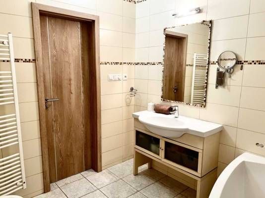 Nabízíme vám ke koupi exkluzivní byt 4+KK o celkové výměře 186,76 m2,dvě garážové stání ,nachází se na klidném místě v ul. Ant. Barcala v blízkosti přírody a zároveň s kompletní občanskou vybaveností v docházkové vzdálenosti. Dům je orientován na jihozápad a na každém patře je pouze jeden byt. Byt se nachází ve třetím nadzemním podlaží ze čtyř. Obývací pokoj o rozměru 28,47 m², kuchyně a jídelna o rozměru 10,45 m², ložnice 14,81 m², dva dětské pokoje 10,75 a 15,74 m², prostorná chodba s vestavenou skříni 19,94 m2, samostatné WC 1,38 m2 s umyvadlem a ruční sprškou, koupelna 6,36 m2 s možnosti zapnout podlahové vytápění. Byt má dále velkou šatnu/technickou místnost 12,87 m² s přípravou pro pračku a sušičku. Dva dětské pokoje se nacházejí v rohové části bytu, vzdálené od ložnice, což poskytuje vzájemné soukromí. Z obývacího pokoje i ložnice je přímý vstup na terasu 36 m². Terasa má vodu a elektřinu. Je ideální pro pohodlné posezení a grilování a vytváří tak prostorný obytný prostor. Všechna okna nabízejí krásný výhled do vnitrobloku a přírodu. Není slyšet žádný městský hluk. K bytu náleží dvě garážové parkovací stání 14,4 m2 a 15,6 m2. V mezipatře, v blízkosti bytu, je umístěn sklep (3 m2), v přízemí je kočárkárna/kolárna. Ideální pro rodinu, která preferuje prostorné bydlení, klid a blízkost přírody. Byt prošel kompletní rekonstrukcí, která zahrnovala novou koupelnu, výměnu všech oken s novými vnitřními žaluzii, nové radiátory v celém bytě, nové dveře a kompletně vyměněná podlaha. V blízkosti najdete zastávku veřejné dopravy, mateřskou školku a školu, obchody (Norma, Penny, Albert, Billa) a další služby. Okolí nabízí klidné prostředí s možnosti procházek v lesoparku, volnočasových aktivit a cyklostezek. Vynikající okolní infrastruktura činí tuto nabídku mimořádně atraktivní.