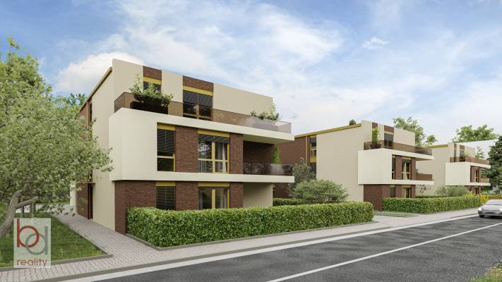 Nabízíme prodej bytu č. A.2.2. o dispozici 4KK o celkové užitné ploše 93,5m2 ve 2NP (1.patře) nového zděného designového vilového bytového domu v rámci developerského projektu rezidenční vily trio v Českých Budějovicích. Byt se skládá dispozičně z předsíně (3,8m2), haly (5,4m2), koupelny (4,8m2) a samostatného WC (4,8m2) , šatny (3,8m2), pracovny (12,4m2), obývacího pokoje s kuchyňským koutem (23,8m2), ložnice (12,1m2), dětský pokoj (22,6m2), terasa (10m2), lodžie (5,3m2). Nedílnou součástí je i sklep (3,6m2) v přízemí domu. V celém projektu je dbáno na komfortní bydlení a moderní trendy. Dvoupatrový vilový bytový dům nabízí sklepy a možnosti parkování (krytá či nekrytá místa) Parkovací stání není v ceně bytu. V projektu bylo myšleno i na relax obyvatel domu, proto nabízí i společnou zahradu. Zde je možnost v rámci budoucího společenství vlastníků vybudovat například dětské hřiště či posezení. Pokud si rádi po práci odpočinete při západu slunce, můžete právě zde. Nové bydlení se nachází poblíž centra města České Budějovice v lokalitě Rožnov. Veškeré služby občanské vybavenosti, jako je škola, školka, MHD a cyklostezky, sportoviště Meteor jsou tak přímo na dosah ruky. V těsné blízkosti je například obchod Billa. Byt má díky své lokalitě i dispozici velmi dobrý potenciál k investici, pronájem Vám rovněž rádi zprostředkujeme.